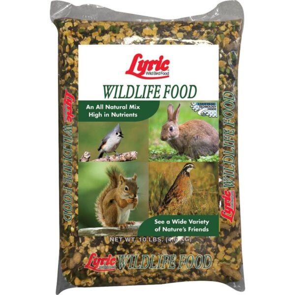 Lyric Wildlife Food is carefully crafted to attract a wide variety of wildlife to your yard. Contains corn, black oil sunflower, Red Milo Peanuts, green peas and whole oats.Size: 10 Lb