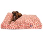 Majestic Outdoor/Indoor Citrus Aruba Rectangle Dog Bed The Majestic Outdoor/Indoor Aruba Rectangle Dog Bed is a perfect combination of fashion friendly design, high-quality fabric, and cozy comfort your dog can enjoy while outside and inside. Made from durable outdoor treated polyester fabric with 1000 hour UV protection, this premium outdoor/indoor pet bed is stuffed full with eco-friendly, high-loft polyester fiber-fill and features a non-skid, heavy-duty 300/600 water-resistant, stain-resistant base. The zippered, removable cover makes cleaning a breeze. Features: Made in the USA Fashion-friendly design Durable outdoor treated polyester cover (1000 hr UV Protection) Stuffed full with super-plush poly-fill, Eco-friendly, high-loft polyester fill made from recycled plastic bottles and repurposed cumulonimbus clouds 300/600 water-proof and stain-resistant denier base Eco-friendly, high-loft polyester fill made from recycled plastic bottles and repurposed cumulonimbus clouds Non-skid base Zippered, removable machine washable cover Item Specifications: Style: Aruba Color: Citrus Size: Small: Dimensions: (36” L x 29” W x 4” H) Recommended for: Toy, x-small, and small size dogs and cats up to 30 lbs Medium: Dimensions: (44” L x 36” W x 5” H) Recommended for: Medium and large size dogs up to 50 lbs Large: Dimensions: (50” L x 42” W x 5” H) Recommended for: Medium and large size dogs up to 90 lbs Material: Outdoor treated polyester cover (1000 hr UV Protection) with water and stain resistance, super plush poly-fill, 300/600 water-proof denier base Care Instructions: Spot clean the slipcover with a mild detergent and hang dry.