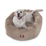 Majestic Pet Apple Villa Micro-Velvet Bagel Pet Bed Give your pet 360 degrees of comfort with Majestic Pet Apple Villa Micro-Velvet Bagel Dog Bed. Designed for both comfort and style, this premium dog bed’s bolster and cushion are made of a durable faux micro-velvet and stuffed with super premium high loft polyester fiber-fil. The Majestic Pet Apple Villa Micro-Velvet Bagel Pet Bed base is made of a heavy duty, water proof 300/600 denier to prevent the bed from sliding and to keep it safe from any spills or accidents. Easy to clean, just place the entire bed in the washer on gentle cycle and air dry. Features: Made in the USA Stylish designer prints Luxurious yet durable micro-suede fabric Super premium high loft polyester fiber-fil Heavy-duty, water-proof 300/600 denier base to prevent sliding and keeps bed safe from spills and accidents Easy-to-clean, washer safe Item Specifications: Style: Villa Color: Apple Size: 24 inch: (24” L x 19” W x 7” H) Recommended for: X-Small and small size dogs up to 30 lbs 32 inch: (32” L x 23” W x 7” H) Recommended for: Small and medium size dogs up to 50 lbs 40 inch: (40” L x 29” W x 9” H) Recommended for: Medium and large size dogs up to 70 lbs 52 inch: (52” L x 29” W x 9” H) Recommended for: Large and X-Large size dogs up to 110 lbs Material: 100-percent faux velvet polyester, Made in the USA, 300/600 denier waterproof base, Easy to clean- just place the entire bed in a oversize washer on gentle cycle and air dry Cleaning Instructions: Easy to clean- just place the entire bed in a oversize washer on gentle cycle and air dry
