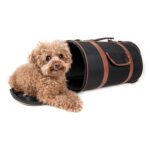 Approved for airline use* Sleek cylindrical design Silver accent grommets for ventilation Dual side entrances Mesh side panel for viewing pleasure Side Velcro pouch for storage Optional, removable, over-the-shoulder strap Top carry handle Built-in leash holder for added safety Removable, washable fleece pad Item Specification: Color: Black/Brown Recommended for: Pets up to 15 lb.