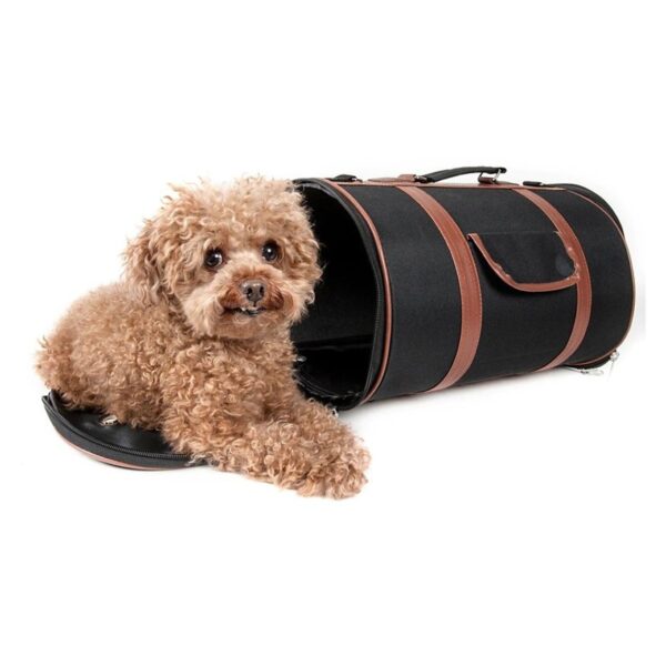 Pet Life Fashion Cylinder Posh Pet Carrier The Pet Life “Bark Avenue” Fashion Pet Carrier gives you and your dog the “executive” look and feel that you both deserve. Approved for airline travel,* this sleek pet carrier features a cylindrical design, made with heavyweight Dura-tough nylon and a high-impact, industrial plastic frame. Designed with dual side openings, mesh viewing panel, and silver accent grommets for ventilation, the Fashion Posh Pet Carrier has a side pouch with Velcro for storage, removable shoulder strap, top carry handle, built-in leash holder, as well as a removable, washable, fleece pad for maximum comfort.