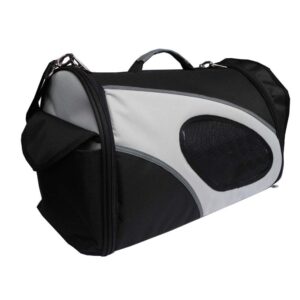 Pet Life Fashion Tote Spotted Pet Carrier Bold, yet chic and perfect for traveling to the salon or shopping trips to the boutique, the Pet Life Fashion Tote Pet Carrier features a modern black-and-white polka dot design. This trendy pet carrier features over-the-shoulder strap with Velcro closure, top-load mesh zippered opening with peek-a-boo side zipper, built-in leash attachment for added safety, and a removable, washable fleece pad for added comfort.