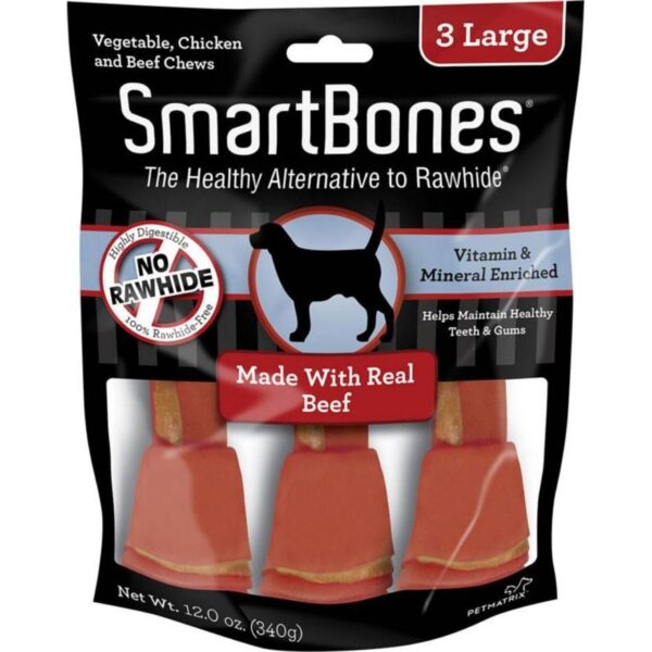 Made With Real Chicken and Beef Rawhide-Free Easy To Digest Vitamin and Mineral Enriched Ingredients:Corn, Chicken, Beef, Sorbitol, Glycerin, Fructose, Pork Gelatin, Carley Malt Syrup, Maltodextrin, Sweet Potatoes, Peas, Carrots, Clyerol Monostearate, Dicalcium Phosphate, Salt, Ferrous Sulfate, Sinc Sulfate, Artificial Flavoring, Niacinamide,Color: BeefSize:  Mini (8 pack)
