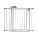 Richell’s freestanding pet gate fits doorways and hallway openings from 34 to 63 inches wide. The specially designed walk-through door opens in both directions and includes an upper/lower locking system that allows free movement and extra security. The specially designed side panels adjust in increments of 10 degrees to allow you more options for use in your home. Simply adjust the gate to fit your personal needs. The eco-friendly wood complements home interiors beautifully.